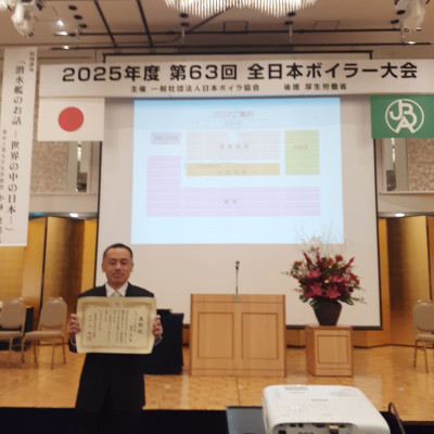 弊社社員が「優良ボイラー技士」として表彰されました。